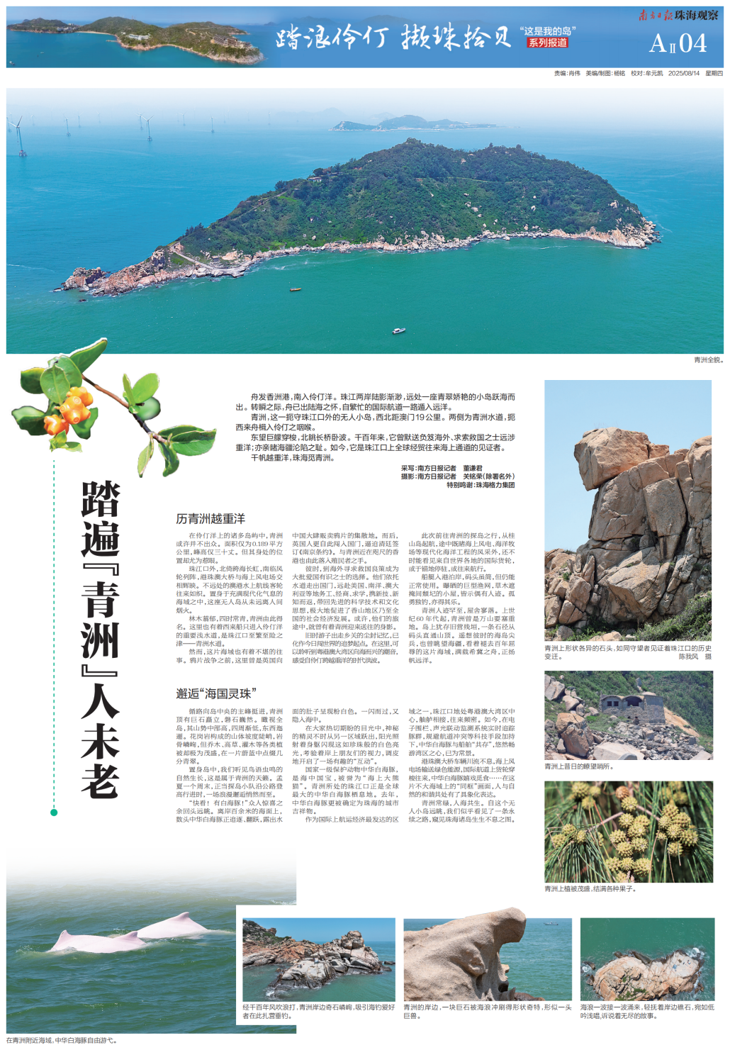 8月14日,由中共珠海市委宣传部携手南方报业传媒集团珠海分社策划,珠海格力集团特别支持的《踏浪伶仃 撷珠拾贝——“这是我的岛”》系列报道推出了最新一期报道《踏遍“青洲”人未老》。