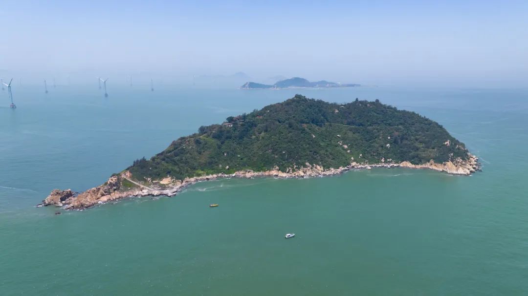 珠江口外,北倚跨海长虹,南临风轮列阵,港珠澳大桥与海上风电场交相辉映。不远处的澳港水上航线客轮往来如织。置身于充满现代化气息的海域之中,这座无人岛从未远离人间烟火。